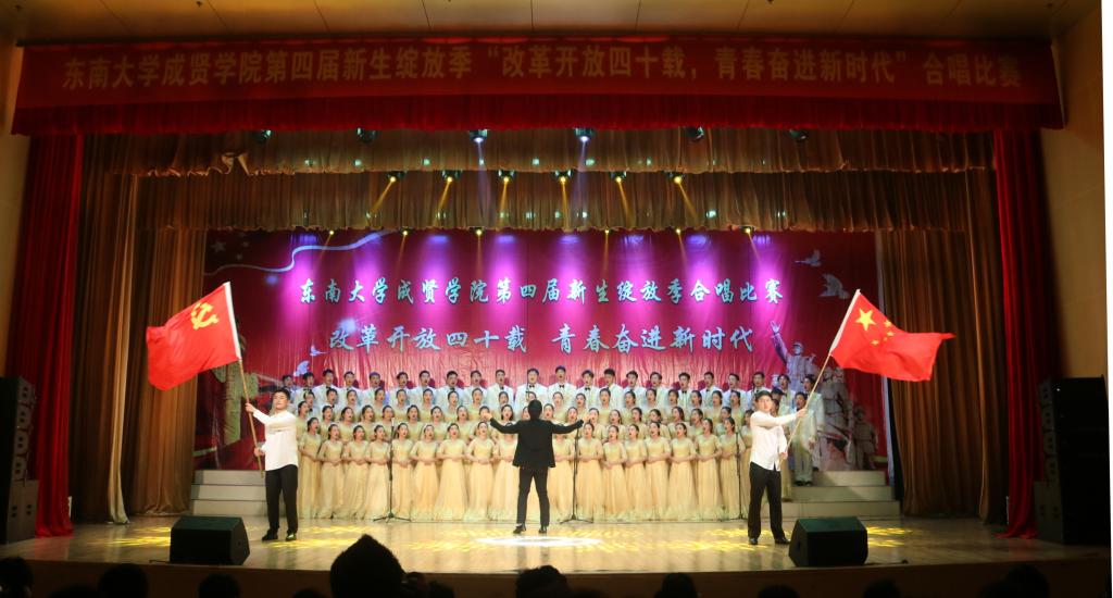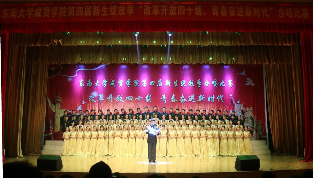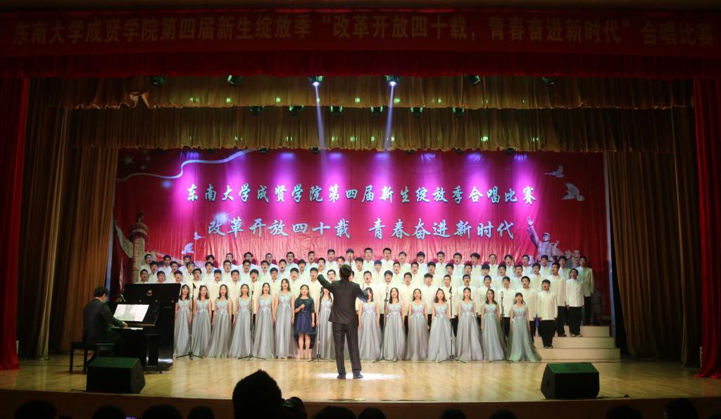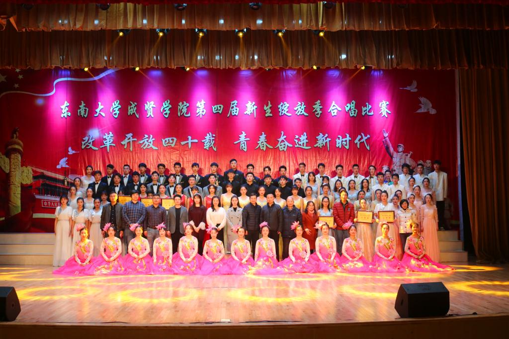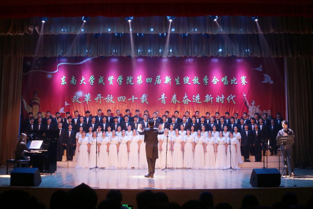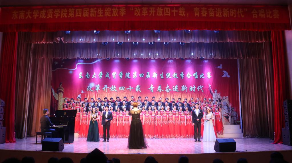 比赛中,大学生艺术指导中心音乐团倾情演绎歌曲《望春风》,展现了经典民谣的优美旋律;各成人视频老师积极参与指导与演出,师生们通力合作,用铿锵有力、激昂向上的歌声引发了观众对改革开放四十周年来伟大变革的共鸣,充分表达出成贤学子更加坚定走中国特色社会主义道路、改革开放道路的信心与决心。比赛在全场齐唱雄壮的《成人视频 校歌》声中圆满结束。