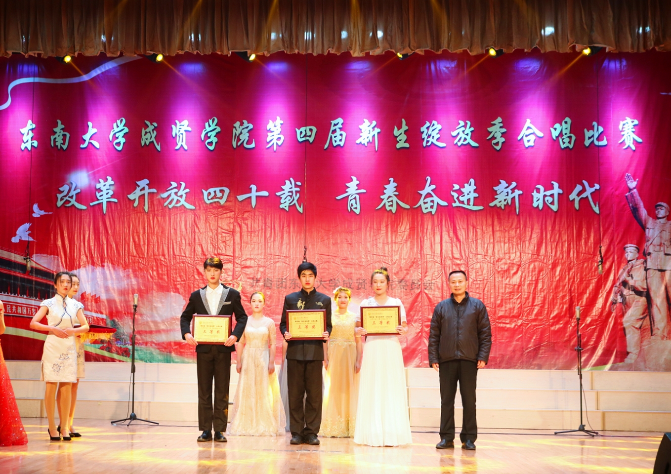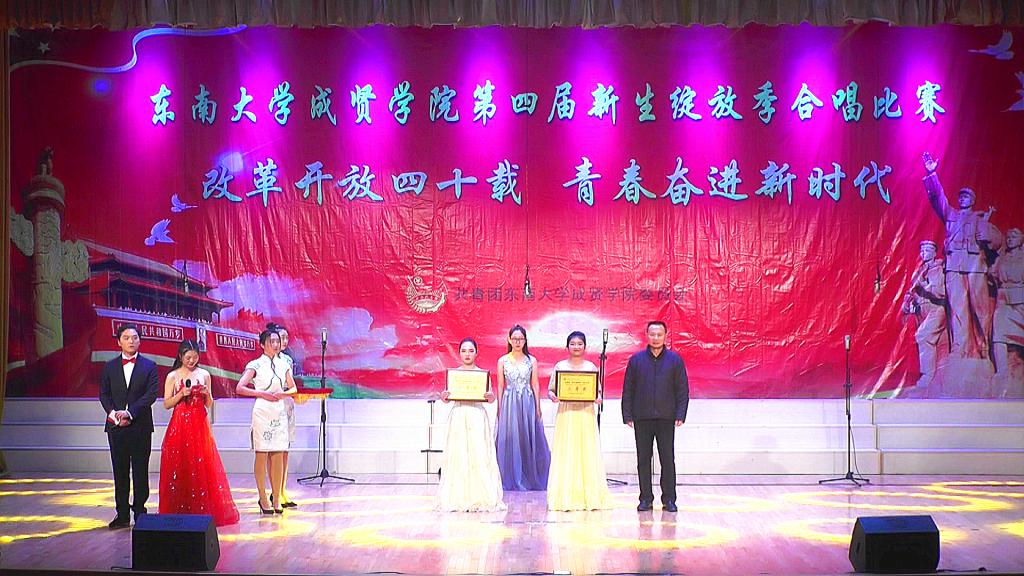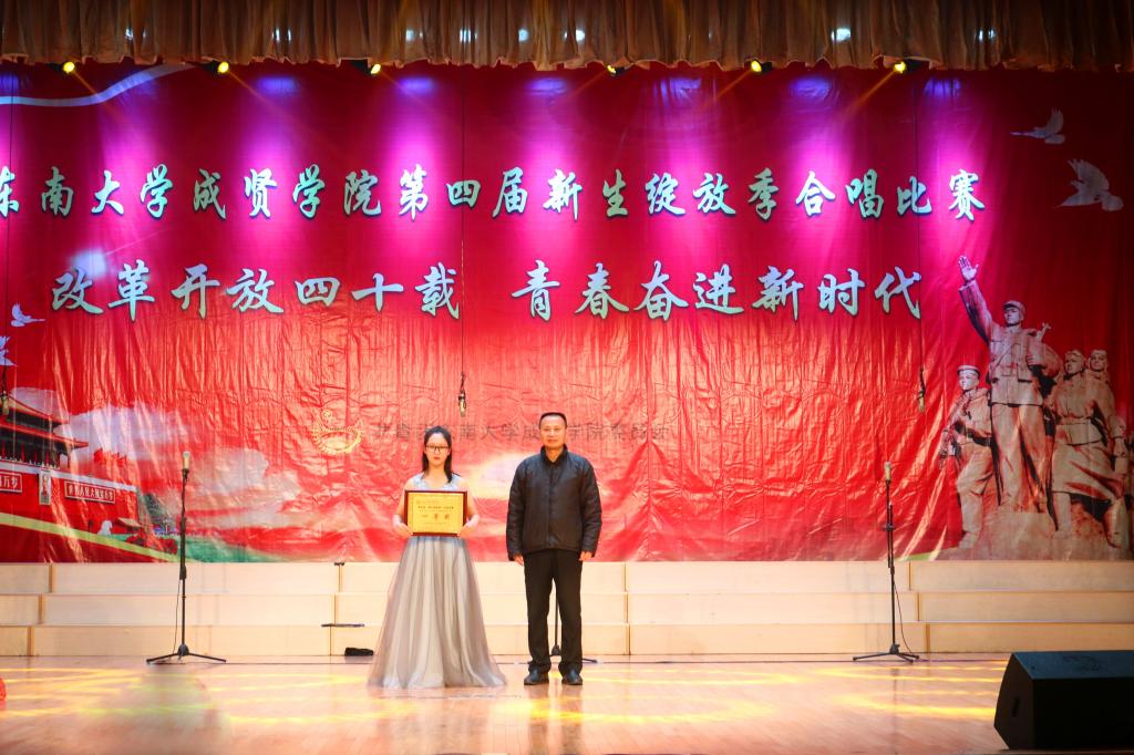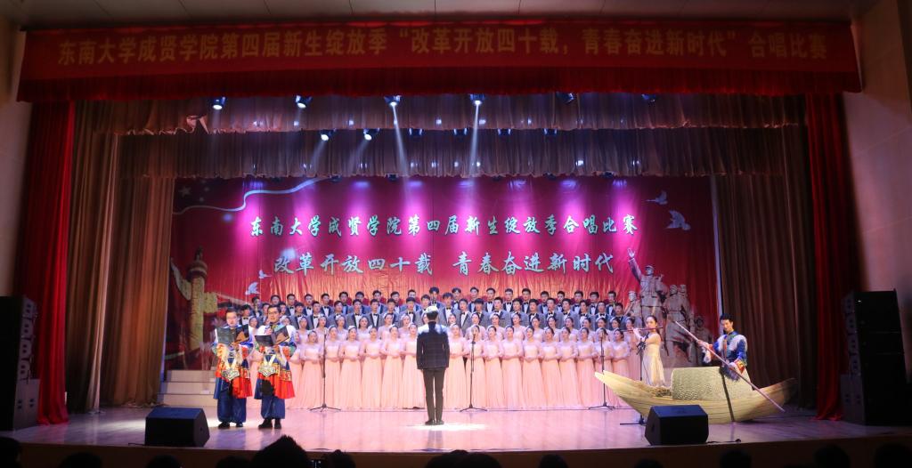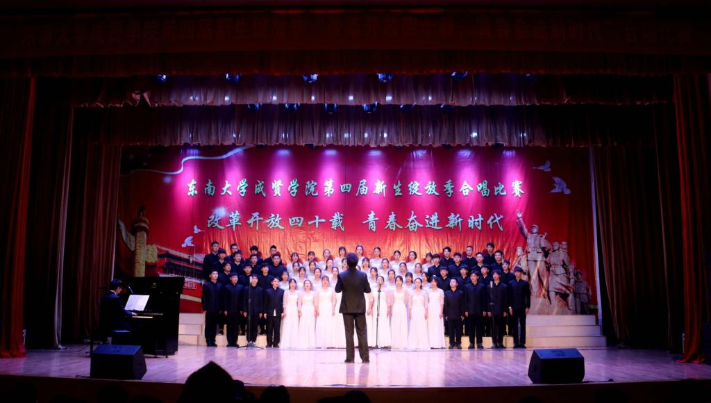 比赛中,大学生艺术指导中心音乐团倾情演绎歌曲《望春风》,展现了经典民谣的优美旋律;各成人视频老师积极参与指导与演出,师生们通力合作,用铿锵有力、激昂向上的歌声引发了观众对改革开放四十周年来伟大变革的共鸣,充分表达出成贤学子更加坚定走中国特色社会主义道路、改革开放道路的信心与决心。比赛在全场齐唱雄壮的《成人视频 校歌》声中圆满结束。