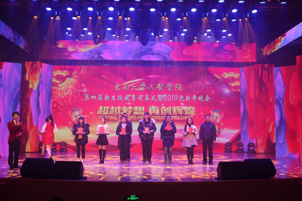 党委书记徐悦作新年致辞,他首先总结了我校一年的工作内容和取得的成绩,介绍了2019年学校重点工作,并对全校师生表达了祝福寄语。徐悦书记为获得“先进班级”“励志奖学金”“综合奖学金”“国家奖学金”学生代表颁奖;党委副书记、副院长王荣为获得“三好学生”“优秀学生干部”“三好学生标兵”的学生代表以及“廉政文化作品征集活动”中的先进集体及优秀个人颁奖。