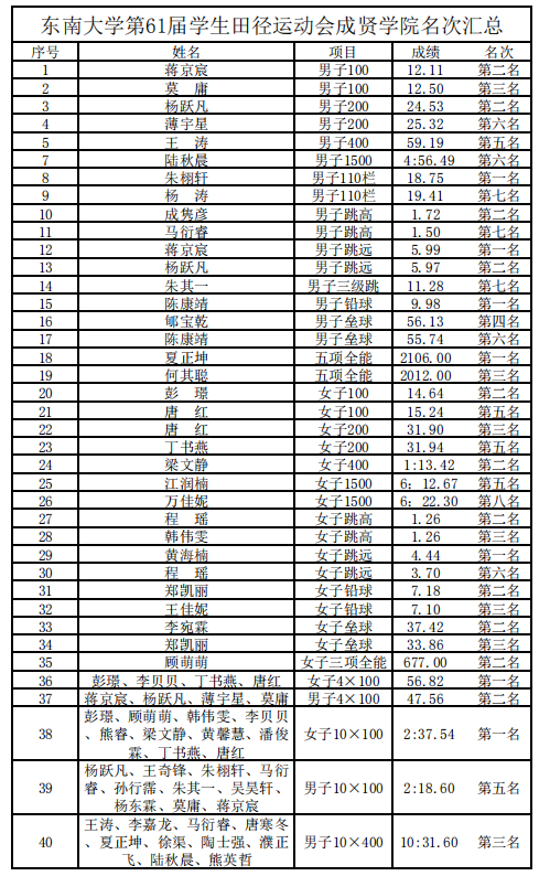 近日成人视频 第61届学生田径运动会圆满结束,我院田径队运动健儿取得了男女团体总分第二名(第一名为交通成人视频)的傲人成绩,同时还获得男子团体总分第二名和女子团体总分第二名(获奖名单附后),所有参赛运动员都展现出了成贤学子求真求美、成人成贤的风采。