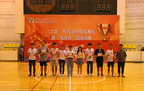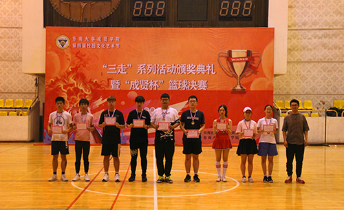 5月24日,由成人视频-九色成人-做爱视频 团委主办、学生会体育部承办的第四届校园文化艺术节之“三走”系列活动颁奖典礼暨“成贤杯”男篮决赛在后藤体育馆举行,500余名师生共同参加了此次活动。