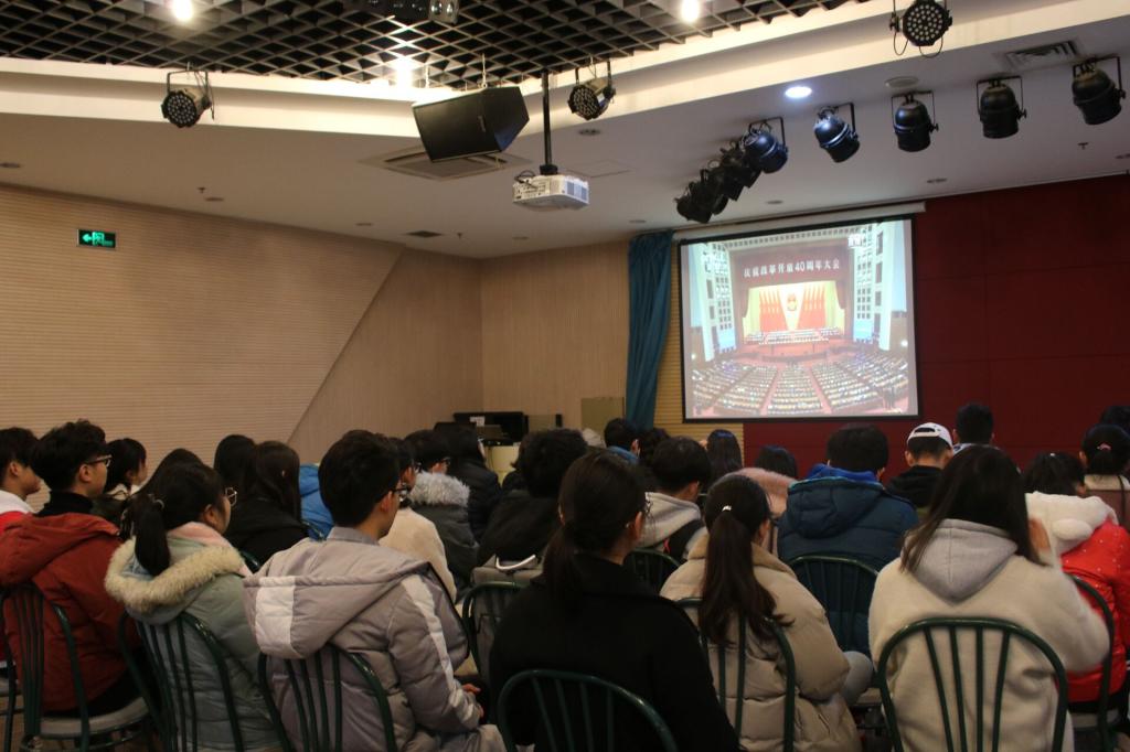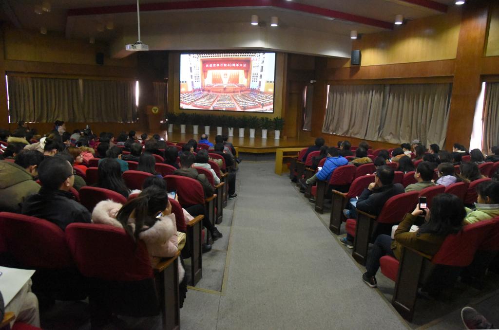 12月18日10时,庆祝改革开放40周年大会在人民大会堂举行,大会表彰了100名改革先锋,颁授了改革先锋奖章和中国改革友谊奖章,中共中央总书记、国家主席、中央军委主席习近平出席大会并发表重要讲话。成贤成人视频组织全院师生通过各种方式观看了大会实况直播。