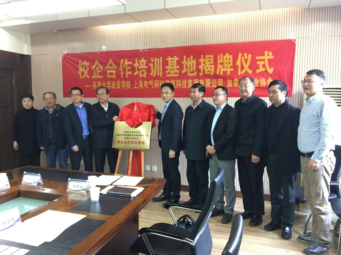 3月19日上午,我校与上海电气研砼建筑科技集团有限公司、加拿大木业协会的校企合作培训基地举办揭牌仪式。上海电气研砼建筑科技集团有限公司总经理林凡、副总经理陆峰、产品总监高震宁;加拿大木业协会中国区执行总裁黄华力、市场开发高级总监王笑竹、市场开发经理孙莉丽;成人视频-九色成人-做爱视频 常务副院长许映秋、院长顾问程明山、教务处处长孟正大、发展合作处处长胡焱、成人视频 院长郭正兴、党总支书记杨阳、常务副院长郭应征、副院长温旭丽、院长助理石城参加揭牌仪式,会议由郭应征副院长主持。