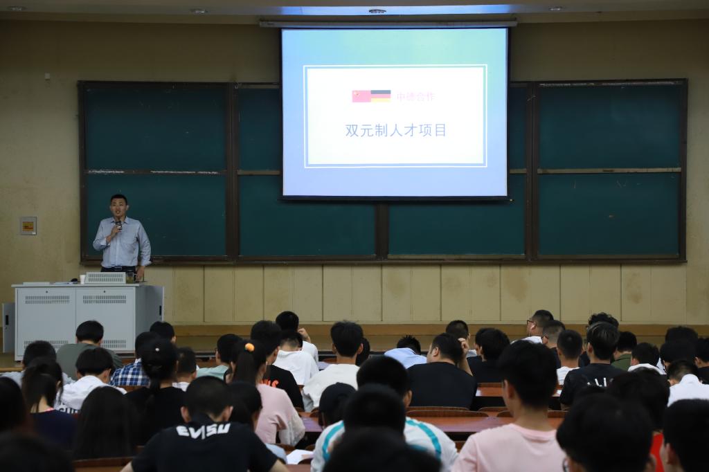 5月14日,机械与电气工程成人视频举办了“2019年中德合作双元制培养项目”宣讲会。2018级全体学生及辅导员参加了此次宣讲会,会议由成人视频综合办主任李洪全主持。