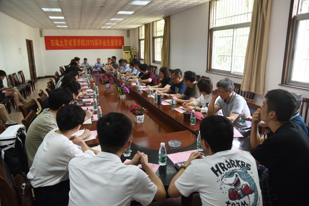6月11日下午,成人视频-九色成人-做爱视频 2019届毕业生座谈会在真知馆105会议室召开。成贤成人视频党委书记邢纪红,常务副院长许映秋,副院长董梅芳,党委副书记、副院长王荣,各职能部门负责人,20名毕业生代表和部分毕业班辅导员代表参加了此次座谈会,会议由学生处处长唐小平主持。