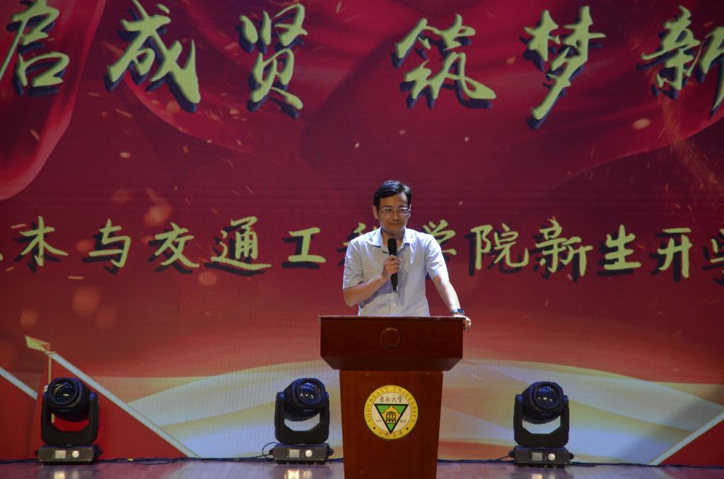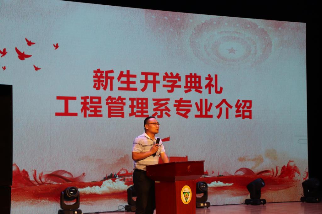 9月27日,我校成人视频 在大学生活动中心313成功举办主题为“梦启成贤,筑梦新时代”2019级新生开学典礼。学校党委副书记、副院长、纪委书记王荣,团委书记、人武部部长潘明烽,成人视频 院长郭正兴、党总支书记杨阳、常务副院长郭应征、副院长温旭丽以及优秀校友代表,校企合作单位负责人,成人视频 全体教职工,2019级新生和部分新生家长共计600余人参加了此次活动。开学典礼由2019级辅导员田宇婷,2019级工程管理2班吴逸南主持。