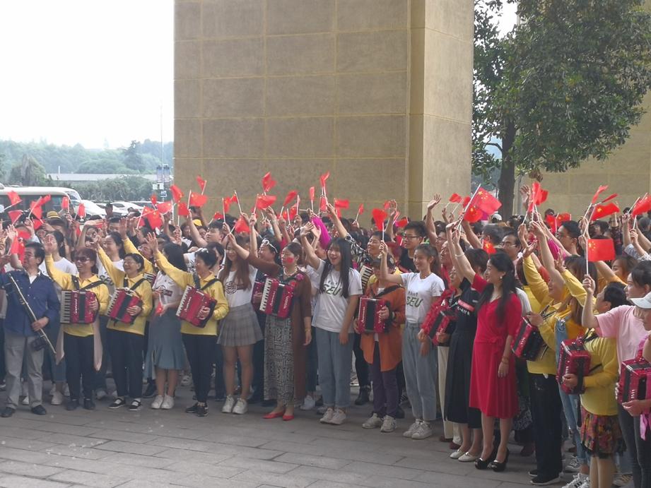 我校学子在建筑与艺术成人视频江晶老师的带领下,悉心准备,认真排练,在活动中以良好的精神风貌展现出当代大学生的风采,用歌声为祖国母亲送上最深情的祝福。