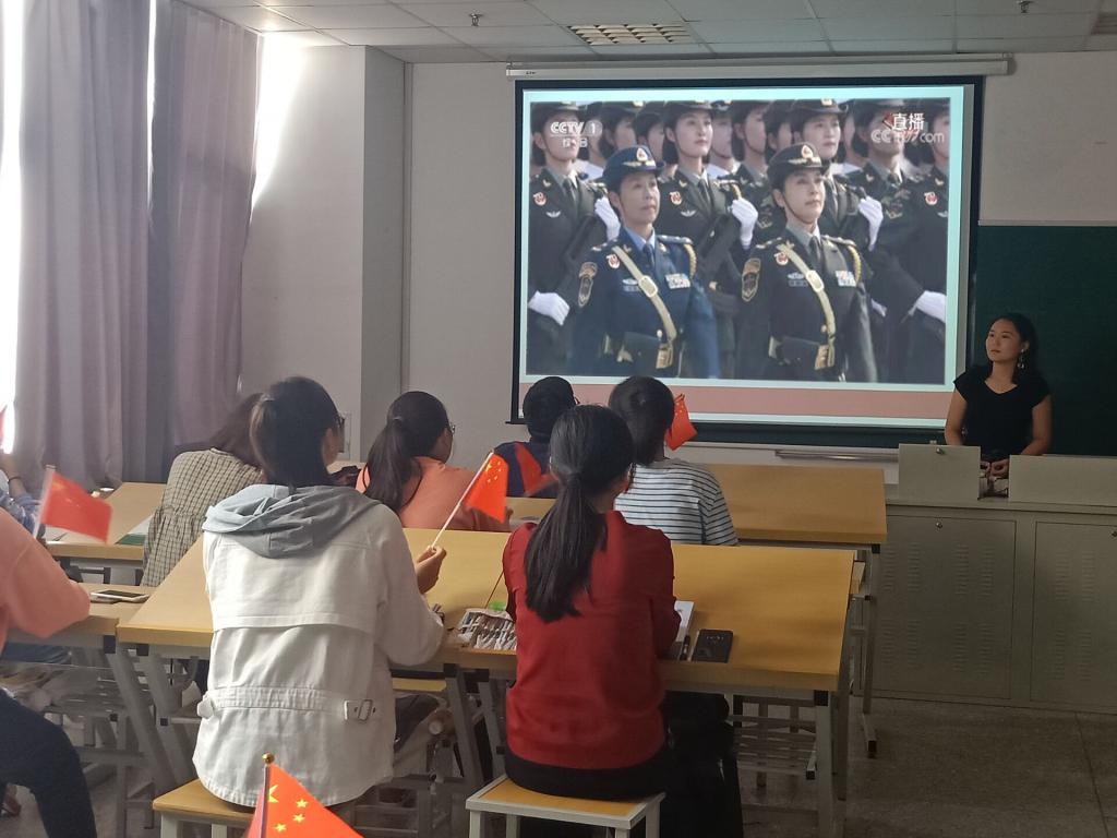 10月1日上午,成人视频 成贤成人视频团委书记、人武部部长潘明烽与300余名师生自发齐聚学校综合楼多功能厅认真观看了庆祝大会实况转播,共同见证伟大祖国荣耀时刻,共同祝福中华民族繁荣富强。大会正式开始后,直播会场一片肃然,只能听见隆隆的礼炮声和国旗仪仗队铿锵有力的步伐声。随着庆典的进行,直播会场内不时发出阵阵掌声,学生们热烈地讨论着庆典中的精彩场景,分享着各自的心得和感悟。同时,师生们还通过电视、网络直播等多种形式收听收看大会盛况。