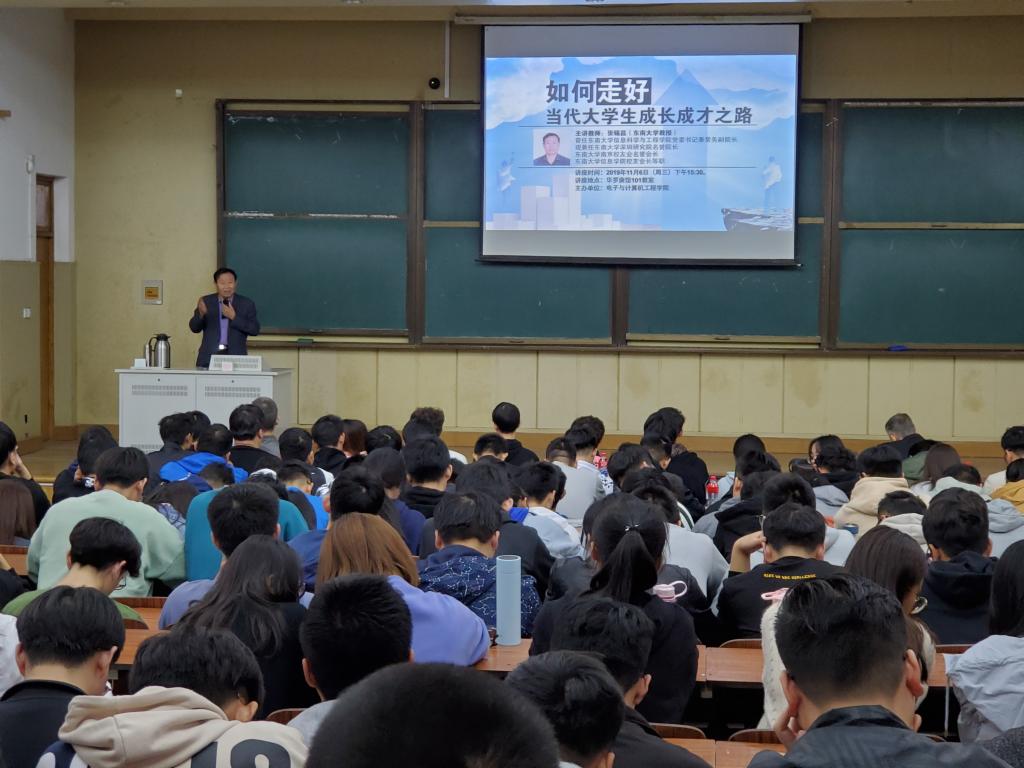 11月6日下午,成人视频 张锡昌教授在华罗庚馆101教室作“如何走好当代大学生成长成才之路”主题讲座,电子与计算机工程成人视频全体辅导员及300多名同学认真聆听了此次讲座。讲座由电子与计算机工程成人视频党总支书记季永华主持。