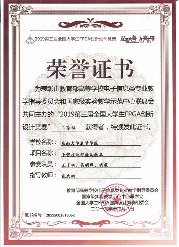 总决赛于12月6日至12月8日在南京江北新区ICisC人才实训基地举办。我校电子与计算机工程成人视频张志鹏老师指导的多个项目组进入全国总决赛,最终“我去深海捞板子”团队王子晰、吴明潭、钱成制作的《手势遥控智能购物机器人》获得“全国二等奖”,该项目同时获得上海安路信息科技有限公司“企业特别奖”。