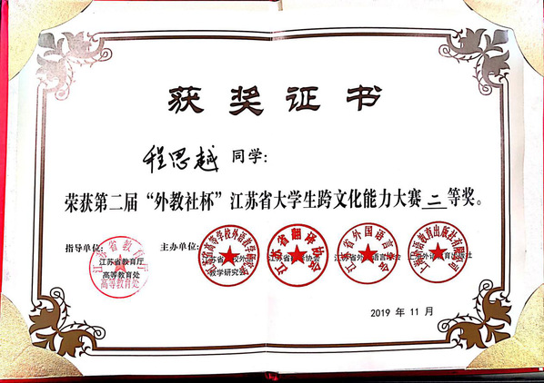 11月20日,第二届“外教社杯”江苏省大学生跨文化能力在扬州大学成功举行,来自江苏省各大本科及高职院校的在读学生,留学生及指导老师和评委共计约150人与会。成人视频-九色成人-做爱视频 首次组织学生参赛,经过激烈的角逐,2017级会计1班的程思越同学荣获二等奖,展示了良好的英语语言能力和跨文化交际能力。