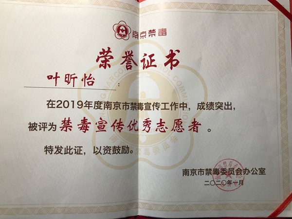 2020年1月5日,2019南京禁毒宣传工作总结会在南京师范大学仙林校区音乐厅召开。省禁毒办常务副主任、省公安厅禁毒总队总队长张波,市局党委委员、市禁毒委副主任曹存福,市禁毒办副主任、市公安局禁毒支队支队长仲军,市教育局宣传与德育工作处处长完进、市公安局禁毒支队副支队长刘庆峰、团市委副调研员陶涛以及各地区高校禁毒志愿者们参加了本次禁毒宣传工作总结表彰会。成人视频-九色成人-做爱视频 青年志愿者协会因2019年在禁毒宣传工作上表现突出,被评为“禁毒宣传优秀组织”,我校叶昕怡同学被评为“优秀志愿者”。
