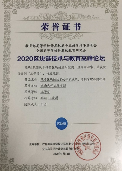 近日,2020区块链技术与教育高峰论坛在厦门成功举办,成人视频-九色成人-做爱视频 荣获三等奖。