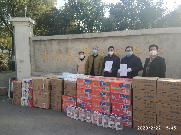 近日,南京中超百货超市有限公司董事长邱中超、成贤店长吴良祥代表公司向我校捐赠了一批急需的防疫物资。我校后勤管理处处长高继鸣代表学校接受了捐赠。