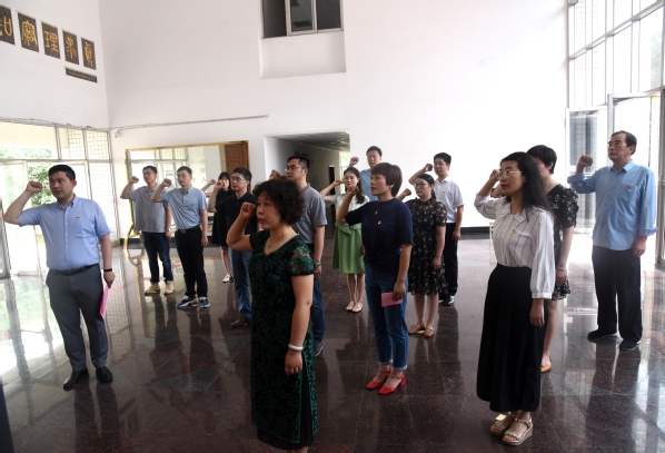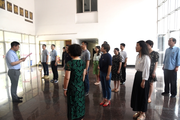 611日上午,机关党总支学工党支部在真知馆大厅举行新党员入党宣誓仪式,仪式由学工党支部组织委员颜秉明主持。校党委副书记、纪委书记、副院长王荣参加宣誓仪式。