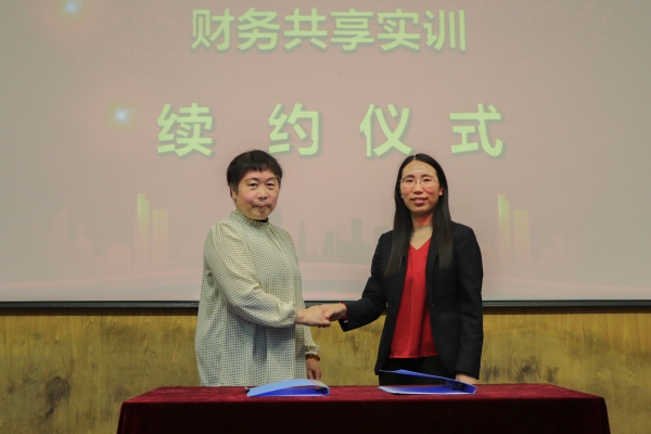 苏宁云财曹红副总监与许映秋常务副院长随后进行了苏宁财务共享实训基地的续约仪式,仪式结束后,苏宁云财杨昱颖主任为现场2018级的学生进行了实训的宣讲。