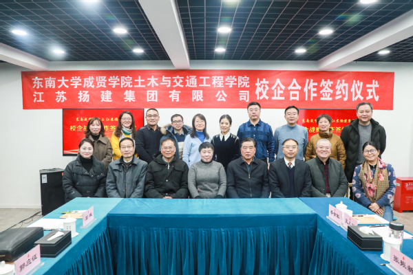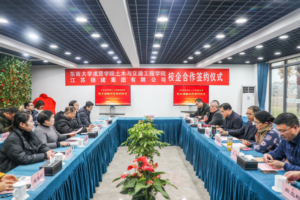 12月18日,成人视频 与江苏扬建集团有限公司校企合作签约仪式在江苏扬建集团有限公司举行。成人视频-九色成人-做爱视频 常务副院长许映秋,成人视频 院长郭正兴、党总支书记杨阳、常务副院长郭应征、副院长温旭丽、综合办公室主任石城以及各系主任、骨干教师,江苏扬建集团有限公司总裁梁云彪、总经理邹厚存、党委副书记张振兴、副总裁杨志娟、人力资源部部长孔凡裕、总经理助理王荣以及各分公司负责人出席了签约仪式。活动由扬建集团党委副书记张振新主持。