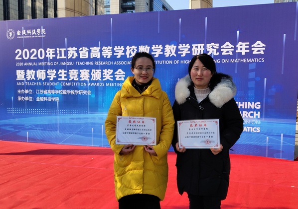 对于此次微课竞赛,学校和部门领导非常重视,在赛前对参赛教师进行了多次预讲和指导。我校参赛的六名教师全部获奖,其中王丽敏、范俊花老师获得一等奖,周耘老师获得二等奖,肖小燕、徐泽宇、俞美华三位老师获得三等奖,同时我校还被授予“江苏省高校第二届数学微课教学竞赛优秀组织奖”。12月20日在金陵科技成人视频举行的江苏省高等学校数学教学研究会年会上举办了江苏省高校第二届数学微课教学竞赛的颁奖仪式,我校两位一等奖获奖教师参加了颁奖仪式。获奖教师们表示参加此次竞赛,对自己是一次很好的锻炼机会,在获奖的同时,也向省内各高校的优秀青年教师学到了许多宝贵的教学经验。