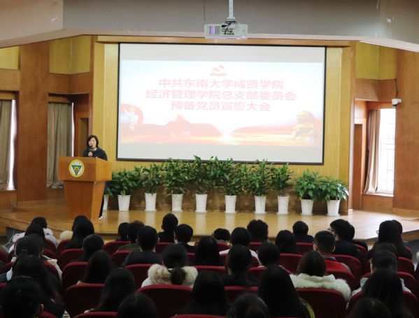 12月28日中午,经济管理成人视频党总支在真知馆报告厅举行预备党员入党宣誓仪式。成人视频党总支成员、各学生党支部书记及全体学生党员参加会议。宣誓仪式由党总支组织委员程希羲主持。