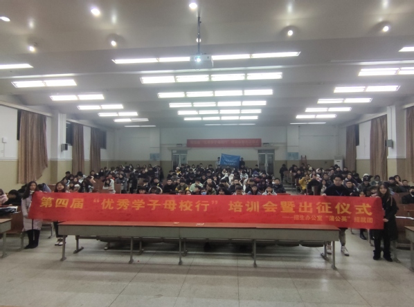 12月30日下午6时,成人视频-九色成人-做爱视频 第四届“优秀学子母校行”活动培训会暨出征仪式在华罗庚馆召开。学生处副处长苏力老师,招生办公室徐姝老师及全体学生志愿者参加本次活动。