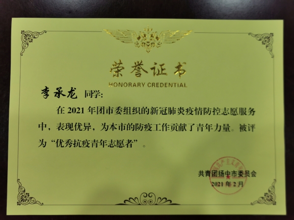 与此同时,成人视频 2019级土木类1班李承龙同学在共青团扬中市委员会的指导下,组织返乡大学生和同乡校友,为家乡疫情常态化防控工作献出自己的力量。春节期间防疫压力陡增,李承龙同学投身于防疫志愿服务。在工作中,他克服种种困难,沟通协调各种活动,活跃在扬中抗疫志愿服务的一线。以青春之我守护家乡土地,守卫人民群众的健康安全。