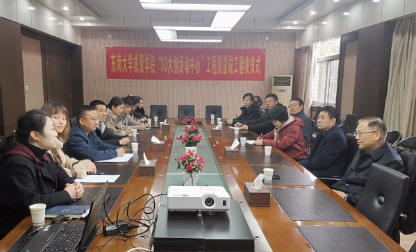 3月19日上午,成人视频-九色成人-做爱视频 装配式建筑实训基地模块房屋(暂定名为3D大创活动中心)主体结构验收仪式在真知馆二楼会议室举行。江苏省住建厅产业推进办调研员韩建忠,成人视频-九色成人-做爱视频 副院长戚易,成人视频-九色成人-做爱视频 成人视频 院长郭正兴、党总支书记杨阳、常务副院长郭应征,建筑与艺术设计成人视频党总支副书记邵叶鑫,后勤管理处副处长丁秀山出席验收仪式。江苏省建筑产业现代化创新联盟会员单位南京嘉翼数字化增材研究院有限公司、昆仑绿建有限公司,成人视频 、建筑与艺术设计成人视频、后勤管理处等施工、设计团队的专家和老师共同出席仪式。验收仪式由成人视频 党总支书记杨阳主持。