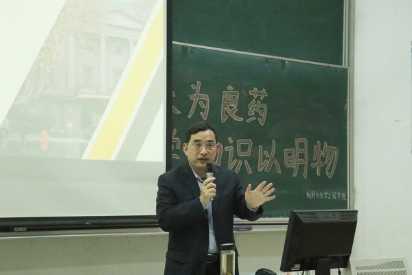 讲座中,孙柏旺教授首先带领同学们回顾了制药工程专业的发展历程,讲述了自己对制药工程专业的理解认识和机遇把握,接着他从新冠病毒疫苗的研制出发,结合具体实例,详细分析了化学与现代药物之间的关系,让同学们充分体会到科学技术的发展特别是化工制药在人们日常生活中的作用。