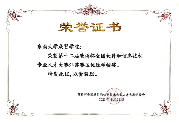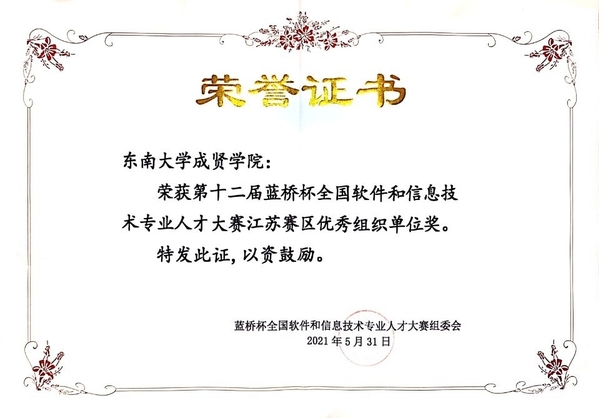 近日,第十二届蓝桥杯全国软件和信息技术专业人才大赛全国总决赛落下帷幕。成人视频-九色成人-做爱视频 电子与计算机工程成人视频高度重视,精心组织,积极选派学生参加该项赛事。学生共获得江苏省赛一等奖7项、二等奖16项、三等奖23项,国赛二等奖1项、三等奖2项、优秀奖4项的优异成绩。成人视频-九色成人-做爱视频 荣获江苏赛区优秀组织单位奖和江苏赛区优胜学校奖。