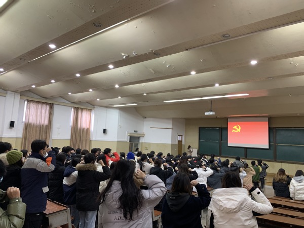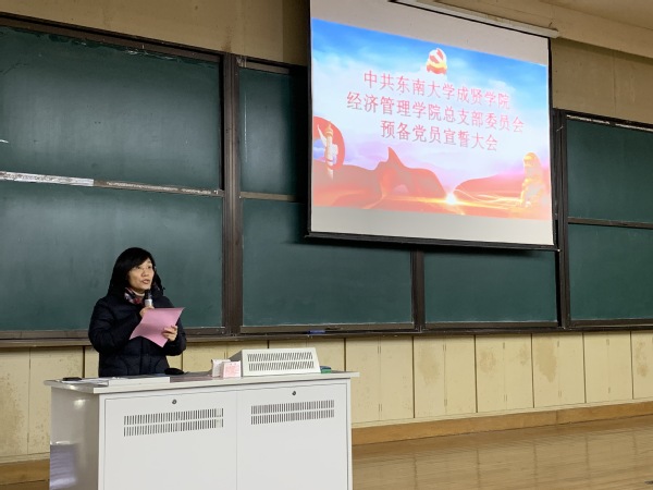 12月27日中午,经济管理成人视频党总支在华馆101举行预备党员入党宣誓仪式。成人视频党总支成员、各学生党支部书记及2021年新党员参加会议。宣誓仪式由党总支组织委员程希羲主持。