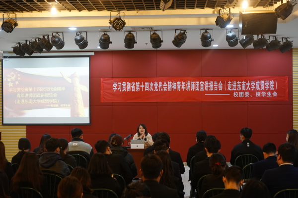 近日,成人视频-九色成人-做爱视频 团委按照团省要求,组织“青马工程”学员和基层团支部团员青年在大学生活动中心多功能厅学习江苏省第十四次党代会精神。青年讲师团成员苏珍晶(经济管理成人视频分团委书记、思政技能大比武“专兼职团干部专项赛”一等奖)和潘天娇(校团委兼职副书记、思政技能大比武“兼挂职团干部专项赛”二等奖)担任宣讲师,3000多名学生线上线下聆听了报告。