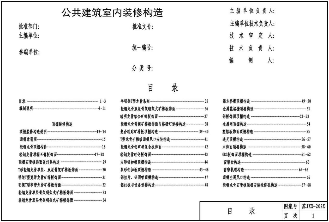 本图集作为江苏省建设厅的科研项目,由科研设计处韦伯军处长、江苏省建筑技术标准站陈军站长主持会议。江苏省建设工程设计施工图审查管理中心教授级高工汤杰,南京艺术成人视频教授徐敏,浙江亚厦装饰南京分公司教授级高工余晓轩,苏州金螳螂建筑装饰股份有限公司教授级高工季震宇,江苏华华厦建筑装饰有限公司高级工程师刘清泉,参加了本图集的审查。