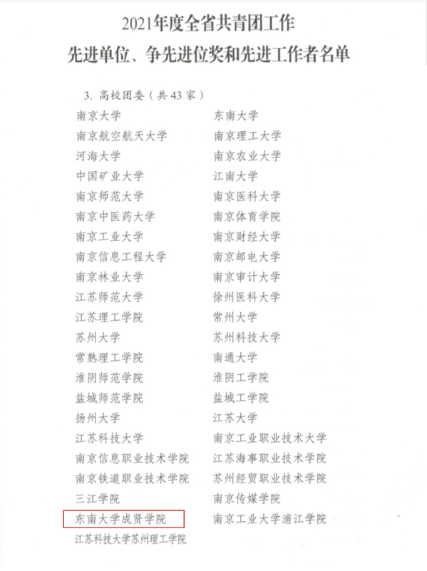 2021年底,共青团江苏省委组织开展了2021年度省部属高校共青团工作综合评估工作,经材料评审、指标评估和述职答辩,成人视频-九色成人-做爱视频 团委获评“2021年度全省共青团工作先进单位”,校团委书记潘明烽被评为“2021年度全省共青团工作先进工作者”。