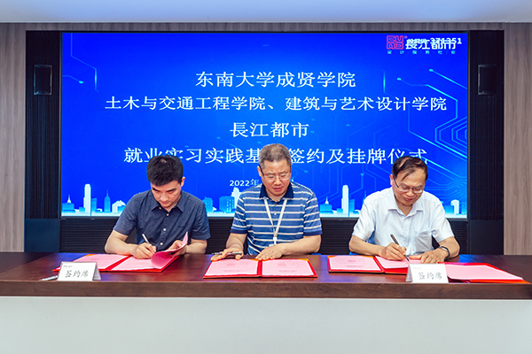 人力资源部经理刘友存则向与会领导、老师介绍了从2013年起入职长江都市的19位成贤校友的职业发展情况,他们在结构设计、建筑设计、室内设计、环境设计等多个岗位,展现了成贤学子扎实的专业功底和良好的综合素质,为企业的快速发展贡献了自己的青春智慧。科研技术管理部经理韦佳以《坚持“双创”战略驱动持续发展——长江都市设计创优与科技创新》为主题,介绍了长江都市从传统的设计企业向工程设计与科技创新相集合的科技企业的转型之路,介绍了企业近年来在绿色建筑与装配式建筑、办公建筑的创新应用、科研课题与技术研究等方面所取得的成果。随后成人视频 院长郭正兴、建筑与艺术设计成人视频党总支副书记邵叶鑫,分别代表两个成人视频与南京长江都市建筑设计股份有限公司总经理董文俊签订了《就业实习实践基地协议书》并挂牌“成人视频-九色成人-做爱视频 就业实习实践基地”。