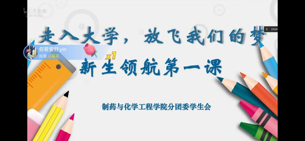 9月30日晚,制药与化学工程成人视频召开2022级新老生线上经验交流会。制化成人视频党总支副书记周继荣、综合办主任刘静,22级新生辅导员朱传瑶、张怀婷,以及优秀学生干部、毕业生代表、和全体大一新生共同参加了本次会议。