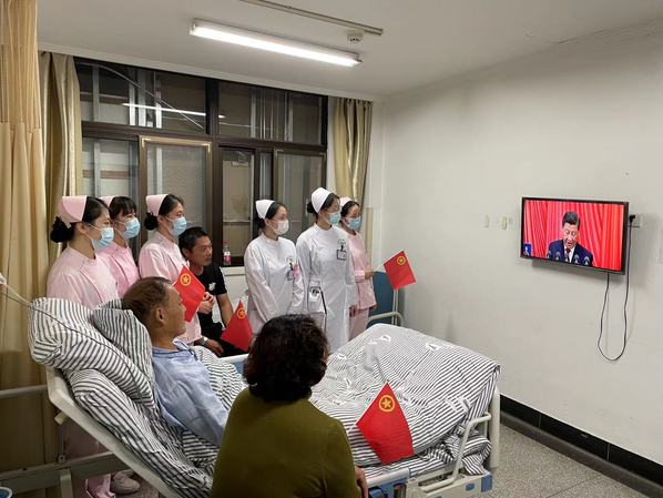 19级护理专业学生在实习单位(中大医院)观看二十大开幕