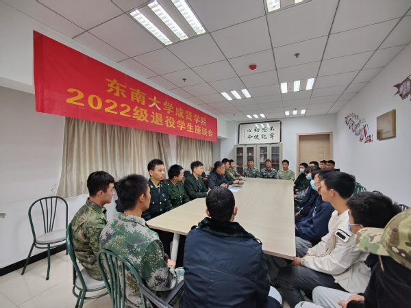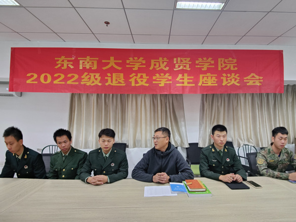 座谈会上,团委书记潘明烽介绍了2022年我校退役学生基本情况,今年共退伍23人(女兵3人),对复学后培养方案的变化、课程重修、学分置换、第二课堂各项目的参与实践等作了介绍和提醒,并对退役学生后期就业、考研和其他方面的工作给同学们作了介绍和解答,希望同学们回校后尽快转变角色,主动适应大学生活,做好职业生涯规划,继续保持新时代青年士兵在部队养成的良好习惯和品质,刻苦学习专业知识,继续发扬部队的优良传统和作风,争做表率,保持先进,争当标兵,不辜负部队的培养,不辜负学校的期望,积极面对学习、生活、工作中的挑战,做到退伍不退志、退伍不褪色,牢记新时代赋予的新任务,在新征程有新作为,为学校和社会的发展贡献自己的青春力量。退役学生事务学生干部介绍了近几年退役学生回校后在国防教育、征兵宣传、退役学生服务、民兵训练、国旗班训练、服务学生等工作上的情况,并鼓励退役学生积极加入学生组织服务锻炼,永葆奋发向上,砥砺前行的精神品质,充分发挥退伍军人在高校中的榜样作用,积极传播正能量,让“最美退役军人”成为引领风尚的时代标杆。