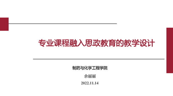刚刚参加完全国高校教师网络培训中心和新华网共同主办的“课程思政高质量推进”研学周(第三期)专题培训的余丽丽老师以“专业课程融入思政教育的教学设计”为题做了主题报告,报告分为两个部分,第一部分她首先分析了课程思政所蕴含的理念特征及思政与专业课程融合需要达到的标准,然后基于制药与化学工程成人视频的专业及学科特点,重点介绍了理工科类课程结合专业特点推进课程思政建设的要点及面临的困难与挑战,并提出了化学类课程开展课程思政的总体思路:一条主线、两个同步、三个阵地、四维矩阵。第二部分以其主讲的药事管理学课程为例具体谈课程思政教学设计。她首先结合药事管理学课程特点,在专业课程中融入思政情感与价值,提出课程核心价值观:爱国、法制、责任,基于此核心价值观,分为三条逻辑线对课程进行整体结构设计,即教师的组织引导线、学生在“平台”参与后的“自发情感”发展线,以及情感产生和发展的心理学依据和效应分析主线,并从课程思政资源库建设、课堂内活动、课堂外活动、研究、传播五个方面对课程进行了整体内容设计。随后,教师与辅导员进行了热烈的讨论交流,互相分享如何在日常教学及管理工作中做到生为首位、课比天大。