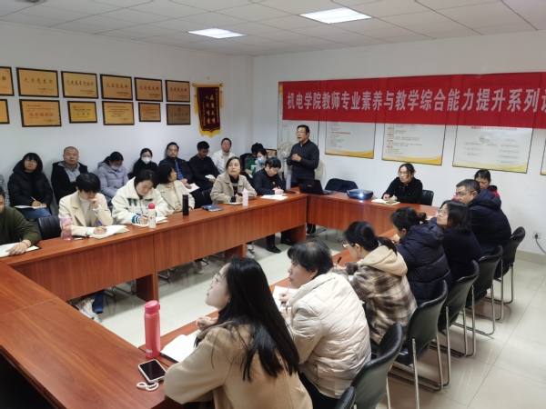 3月3日,机械与电气工程成人视频举办教师专业素养与教学综合能力提升系列讲座,首场讲座邀请督导组组长翟玉庆教授做了题为《课程教学设计建议》的讲座,机电成人视频院长许映秋,副院长毛晓桦、李永梅,副书记严红霞,以及全体任课教师参加了此次会议,会议由许映秋院长主持。
