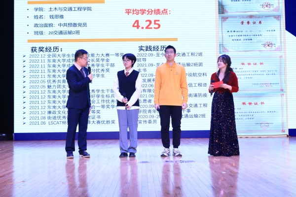 “旌旗作响,汇聚新春奋进力量;旗开得胜,谱写青春至善华章”,大会在舞蹈“旗开得胜”的激情演绎中拉开帷幕。本次大会共分为两个篇章,分别是“见贤思齐”与“勉悟精习”。在第一篇章“见贤思齐”中,省级先进个人钱思雅、张吴桐与省级先进集体19级工程造价2班的展示为在座学生树立了优秀榜样,激励同学们学习先进、发奋图强。舞蹈"天天向上"也展现出成人视频 学生的活力与精神追求。