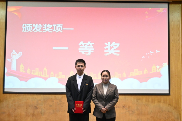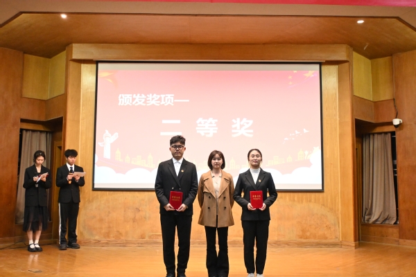 通过初赛及复赛的选拔,11位选手从数百名参赛者中脱颖而出。各参赛选手们以亲身经历和所见所闻,结合青年人、青年事、身边事,声情并茂、慷慨激昂地述说着时代的进步与奋进的征程,讲述着榜样的力量与亲身的感悟,他们围绕着8个红色演讲主题,尽情分享中国共产党成立以来的光辉历程、伟大成就和宝贵经验,体现了新时代青年奋斗者执着、坚韧的精神品格。在一番激烈的角逐后,经过评委老师打分,本次比赛共评选出一等奖一位、二等奖两位、三等奖三位,由严红霞书记、邓蓉蓉老师、王磊老师分别为获奖选手颁奖。