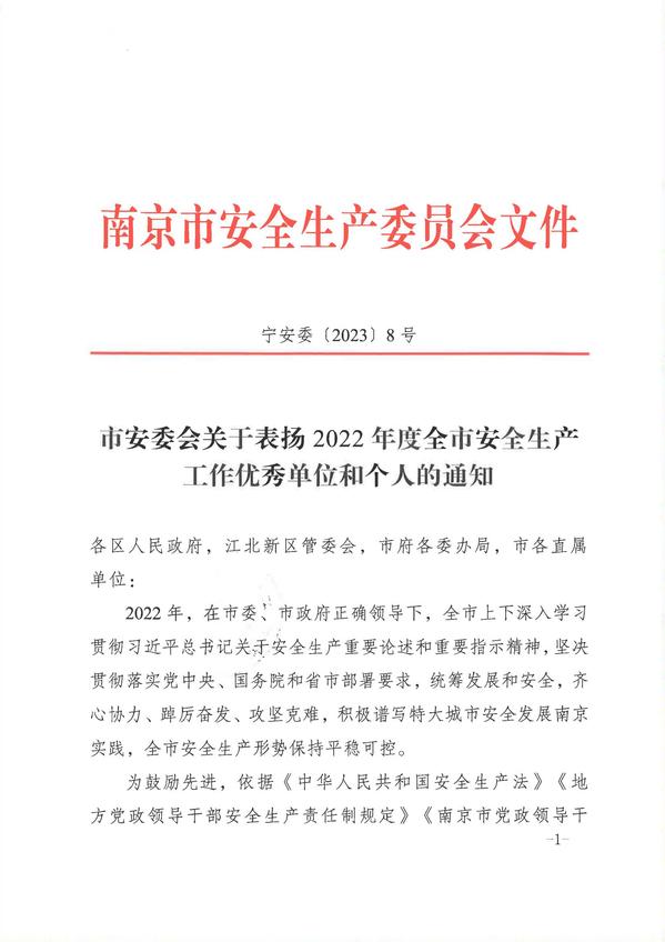 根据宁安委〔2023〕8号《市安委会关于表扬2022年度全市安全生产工作优秀单位和个人的通知》精神,我校成人视频 成人视频 院长郭正兴教授荣获“南京市安全生产工作优秀个人”荣誉称号。