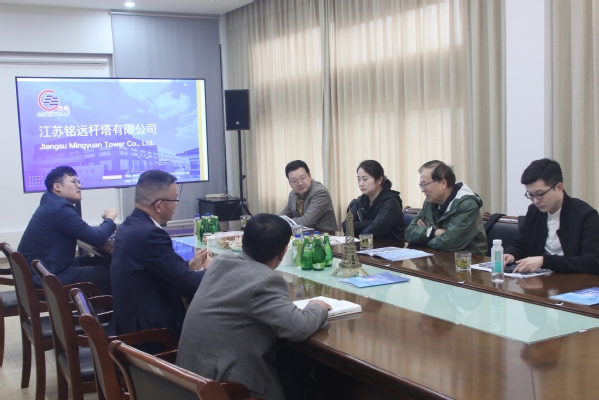 江苏铭远杆塔有限公司是无锡市专精特新小巨人企业、高新技术企业、无锡市知名商标企业、江苏省民营科技企业、无锡市重合同守信用企业,在国内外行业内均有一定知名度。在交流中,江苏铭远杆塔有限公司总经理鲁旭晨向成人视频 郭院长一行详细介绍了公司发展、产品特色、远景规划和现实需求。郭院长听取介绍后首先表达了对校友企业所取得成绩的认可,其次向企业介绍了成人视频今年毕业生的相关情况和成人视频目前的特色、优势,最后对企业在产业发展、技术创新和校企合作等方面进行了详细而务实的指导并对校友企业在智能制造、高质量制造和碳排放等方面进行了前瞻性的规划。