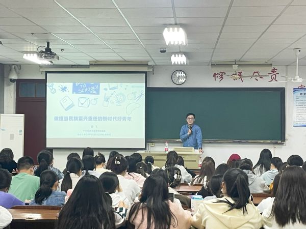 为引导青年学生深入学习贯彻党的二十大精神,5月12日,经济管理成人视频邀请南京市党的二十大精神宣讲团成员、南京工业大学马克思主义成人视频副教授、硕士生导师滕飞老师以“做担当民族复兴重任的新时代好青年”为题进行了一场生动的主题教育,经济管理成人视频党总支副书记李清源和一百余名积极分子聆听了党课。